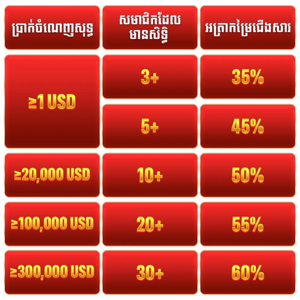 7. ដើម្បីដកប្រាក់រង្វាន់បាន អ្នកលេងត្រូវលេងចំនួន ១ ជុំ (X1) មុននឹងធ្វើការបញ្ជាដកប្រាក់ ។